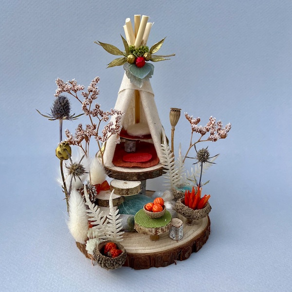 Enjoy making this charming and festive little kit – A tiny teepee camp in a wintry garden scene.